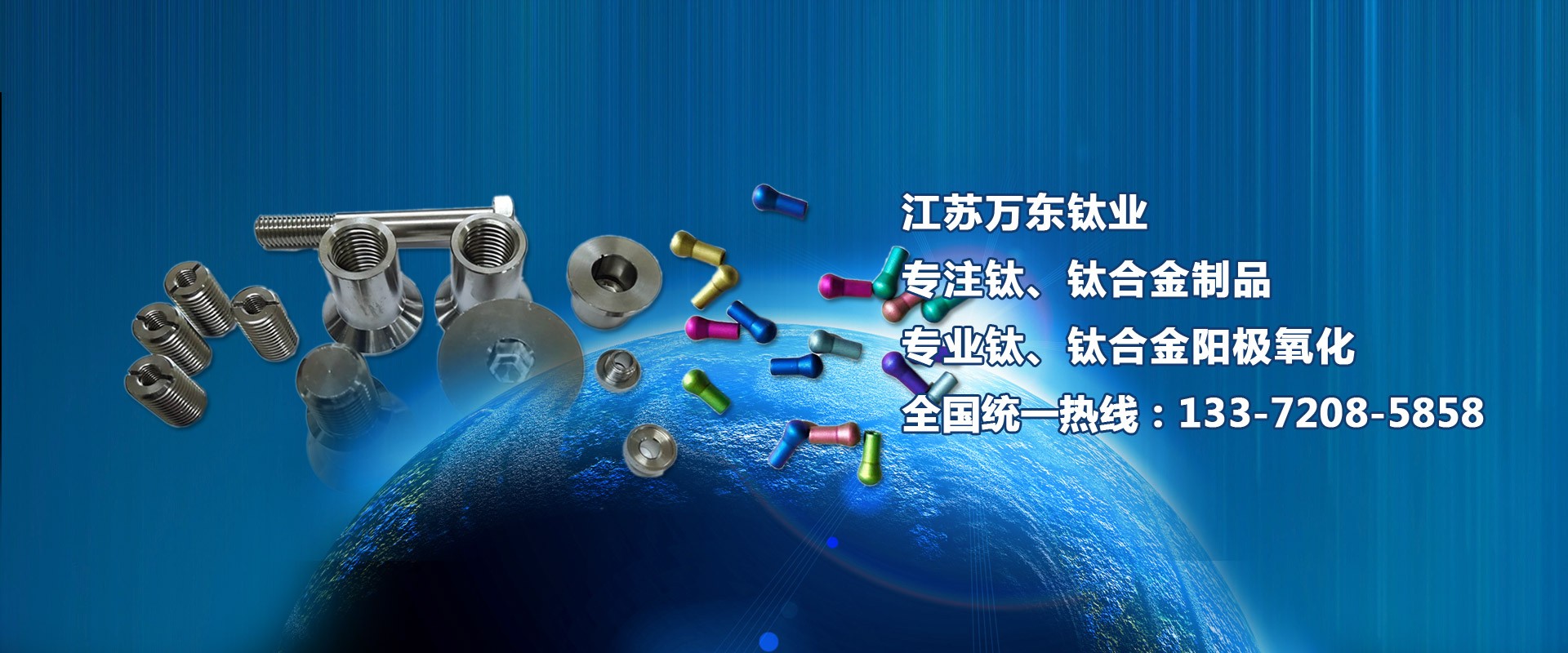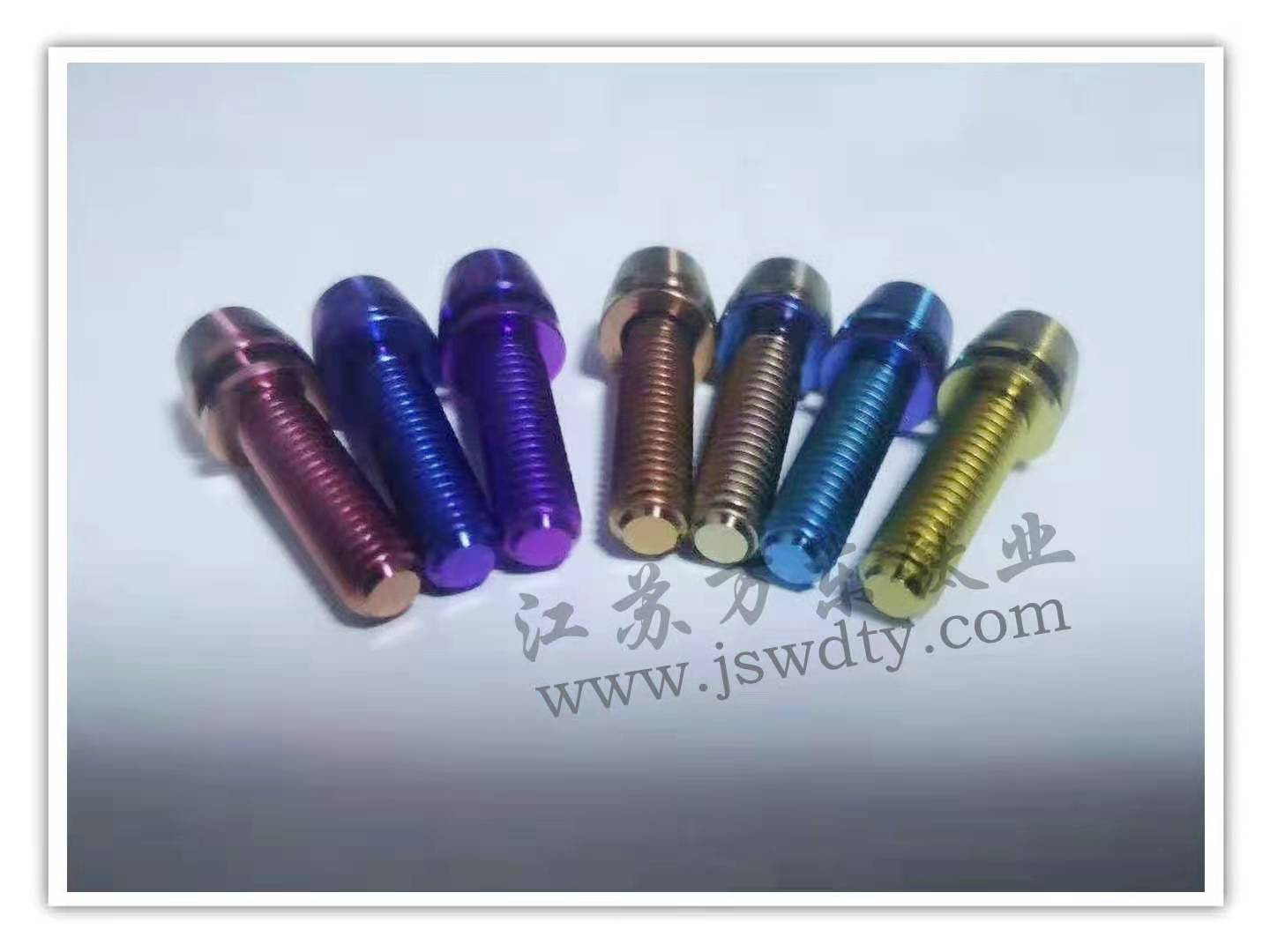 江蘇萬東鈦業(yè)科技有限公司坐落于中國江蘇省南通市,擁有28年的鈦合金研發(fā)技術,公司專業(yè)從事:鈦陽極氧化、鈦合金陽極氧化、脈沖氧化。鈦合金緊固件生產:M0.6以上高品質:螺絲、螺母、螺柱、螺套、可根據用戶的特殊要求定制。